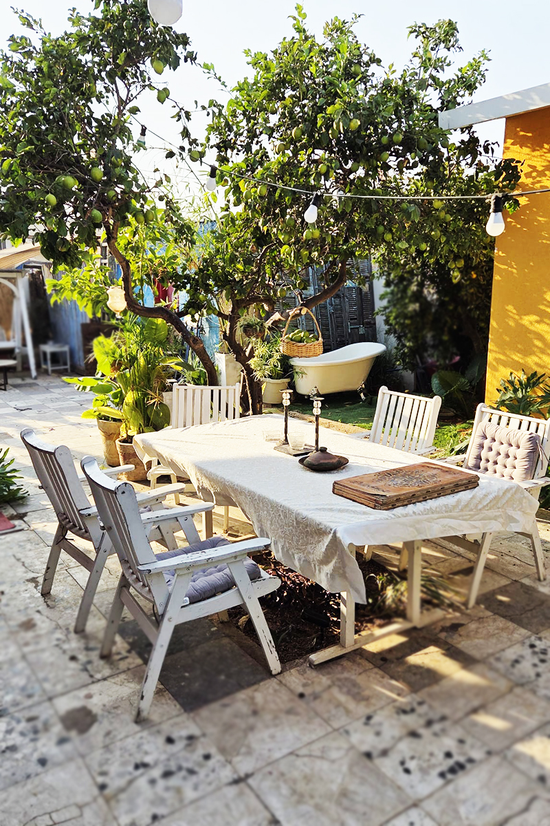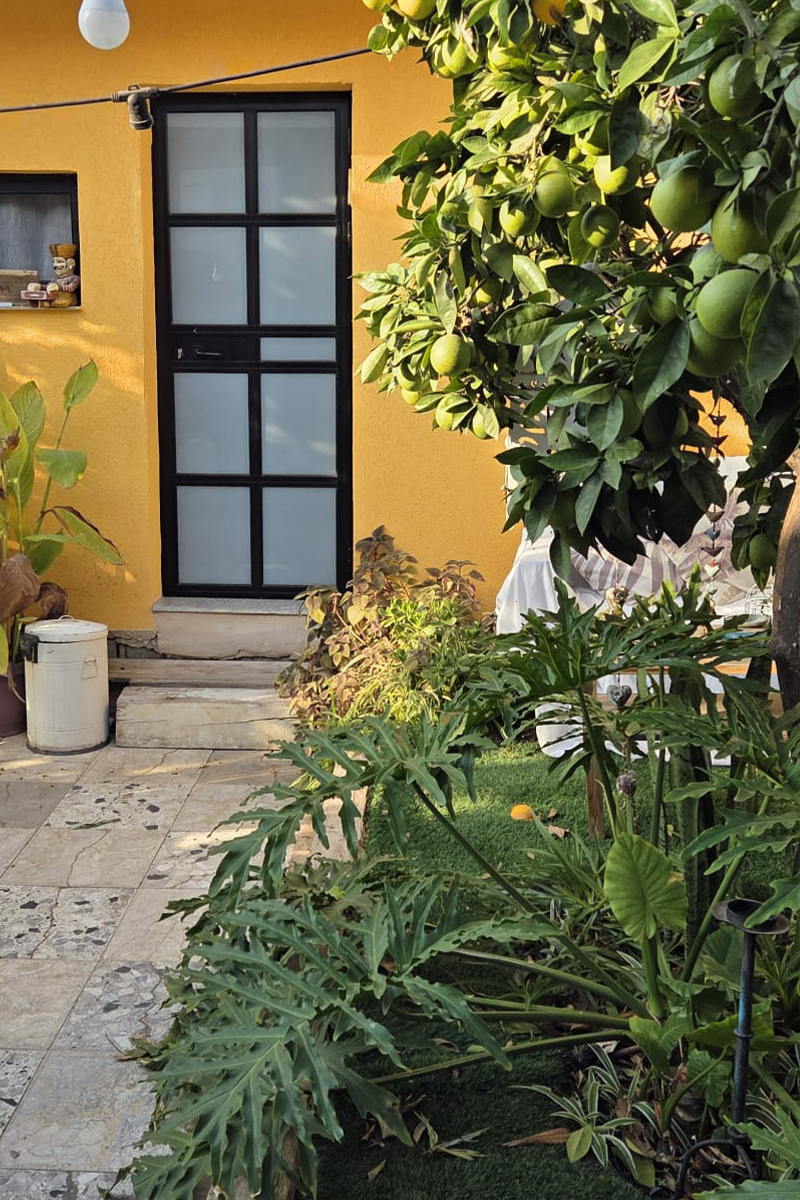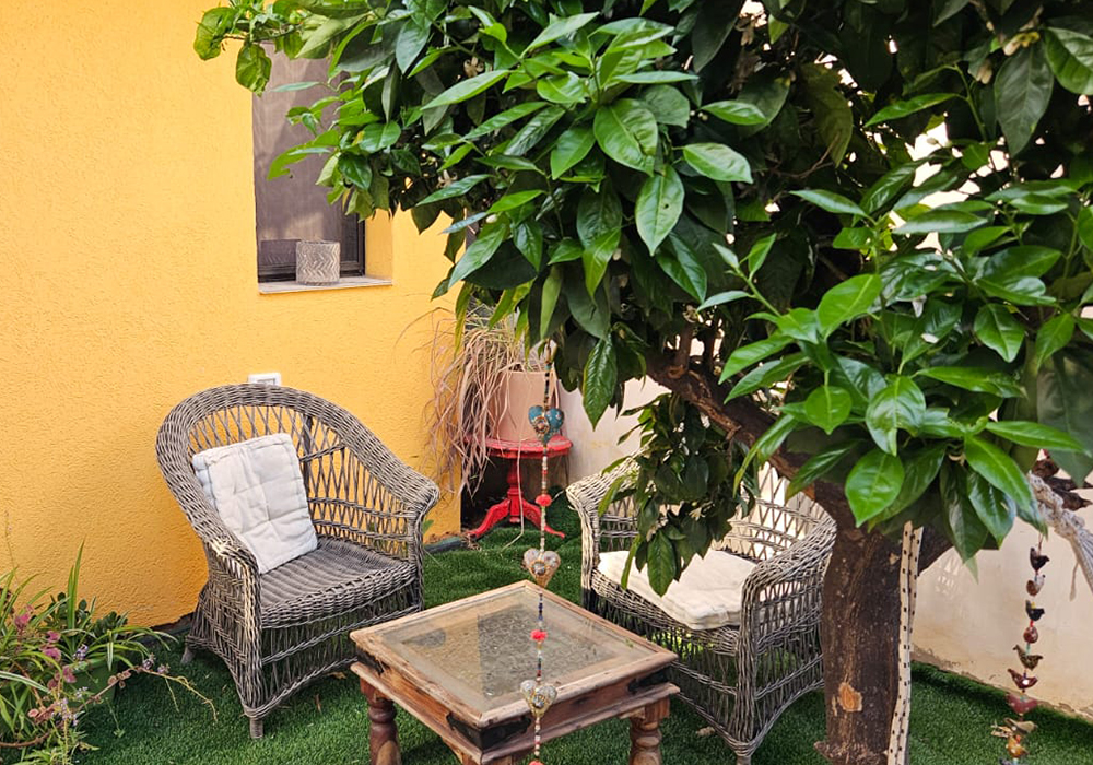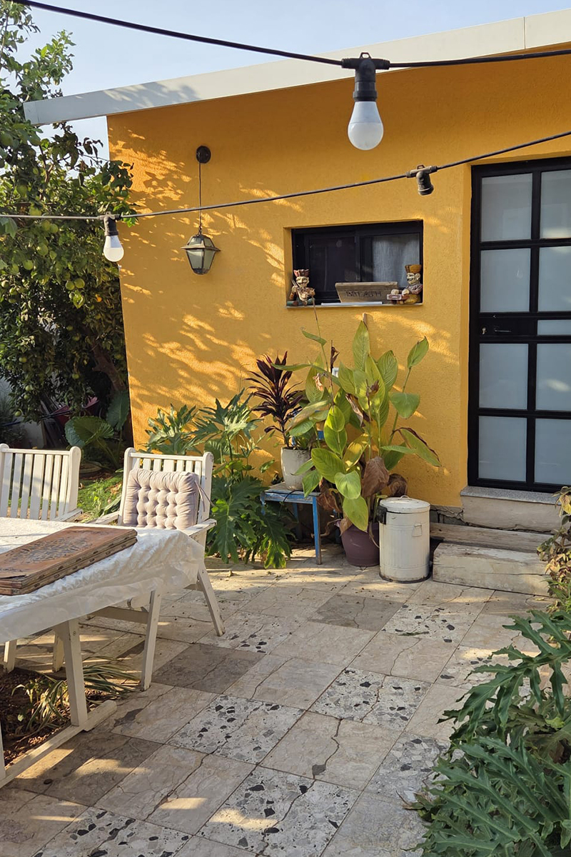 בחוץ מחכה לכם חצר שמש פרטית, עטופה בירוק ובפרחים ריחניים, עם פינת ישיבה שקטה שבה הזמן מאט והלב נרגע. זו פינה מושלמת לקפה של בוקר, קרני שמש נעימות או כוס יין מול השקיעה.